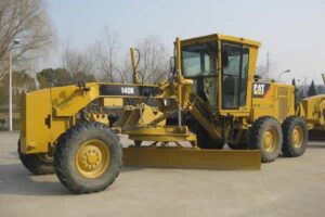 Commonly referred to as a road grader or a motor grader, it is a construction machine with a long blade used to create a flat surface during the grading process.